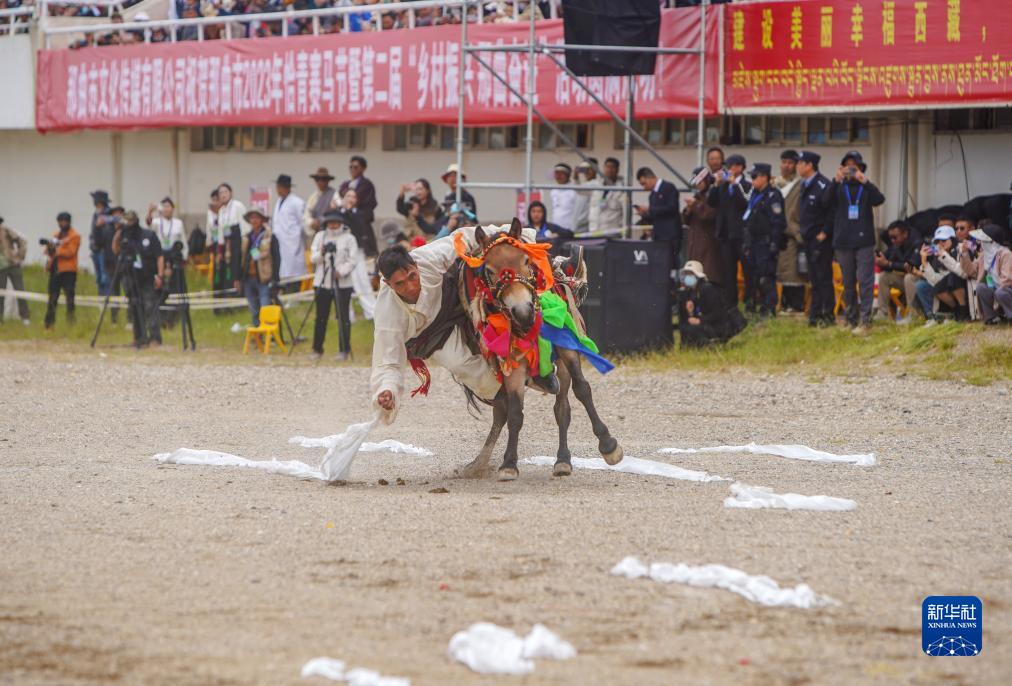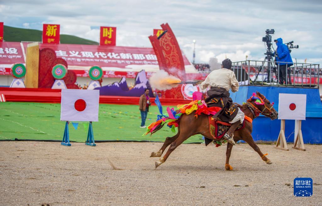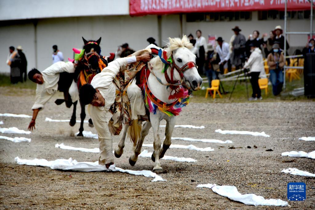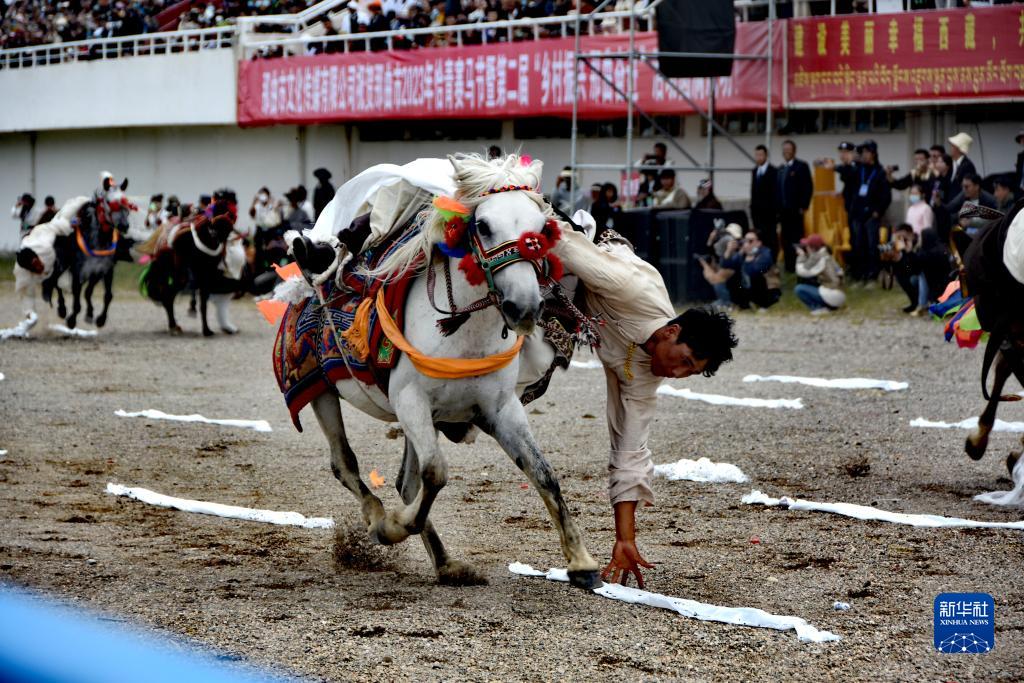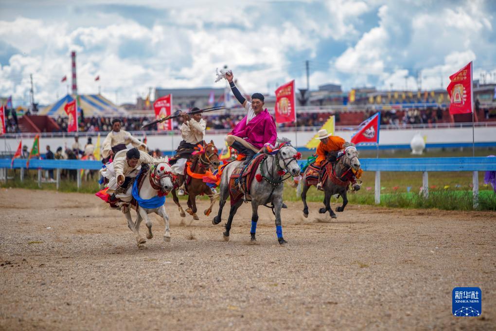 8月10日,騎手進行馬術(shù)表演。新華社發(fā)(旦增努布攝)