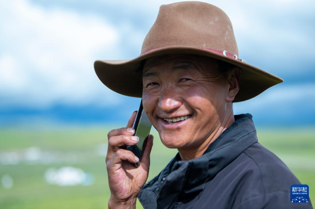 8月11日,次扎達(dá)跟妻子通話(huà)聊家常。新華社發(fā)(旦增努布攝)?