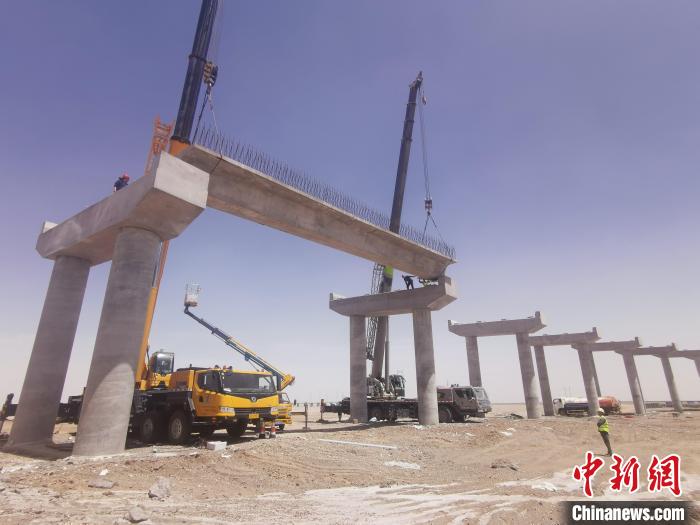 圖為首片預(yù)制箱梁定位。劉益航攝