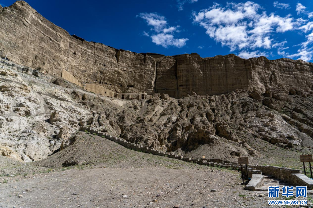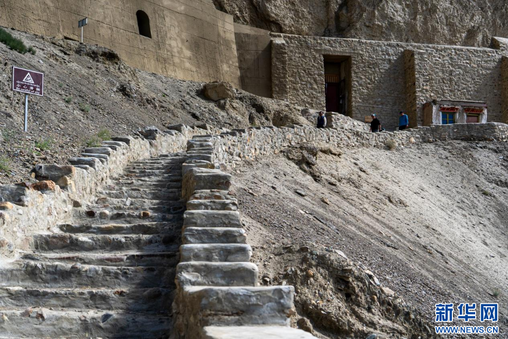 從遺址腳下一條蜿蜒的石頭路依山而建,一直延伸到洞窟門口?!斑@里以前沒有路,都是土坡。”阿旺米朗介紹,以前想要到洞窟參觀,都得手腳并用爬上去。1998年,他開始推動修建山上的道路,號召東嘎村村民一起背著石頭上山,揮鋤挖土,用了幾年的時間才修成了如今的石頭路。
