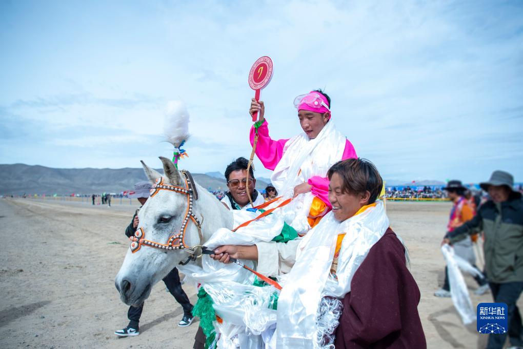 8月23日,改則縣巴桑倫珠(上)和駿馬“玉赤達(dá)歐”在奪得8.5公里速度賽冠軍后。新華社發(fā)(旦增努布攝)