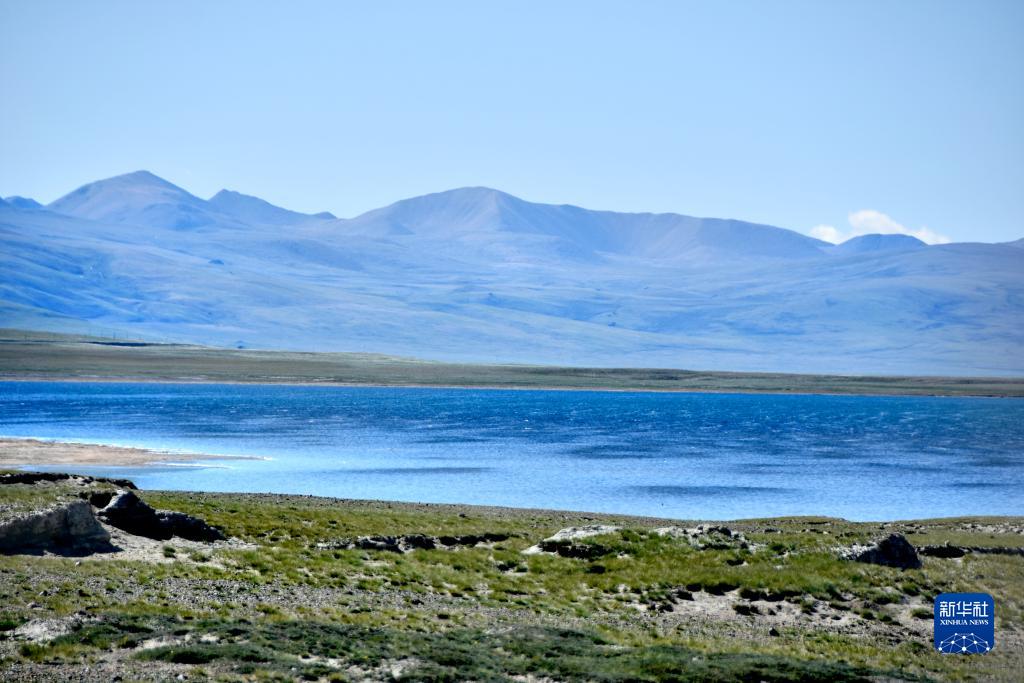 飛鳥從打加錯湖面掠過(無人機照片,8月30日攝)。新華社發(fā)(旦增努布 攝)
