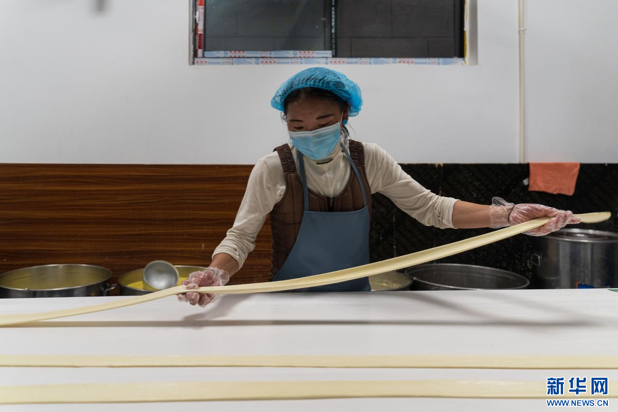 圖為工作人員在制作傳統(tǒng)食品(8月25日攝)。 新華網發(fā) 蘇思源 攝