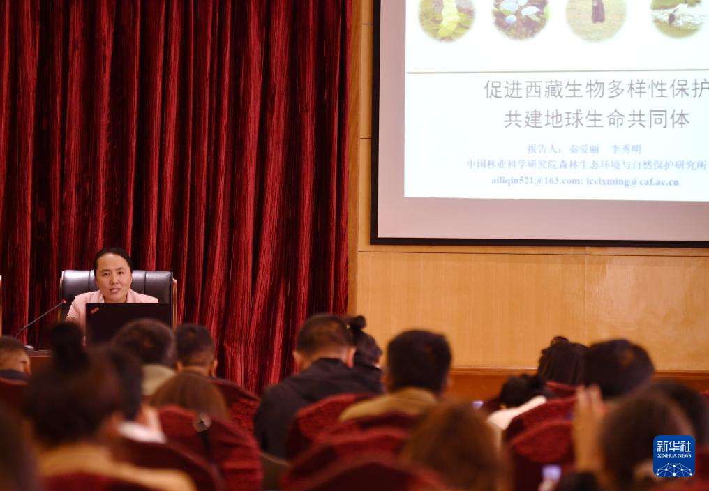 9月5日,中國(guó)林業(yè)科學(xué)研究院副研究員秦愛(ài)麗為與會(huì)人員作生物多樣性保護(hù)知識(shí)講座。新華社記者 張汝鋒 攝