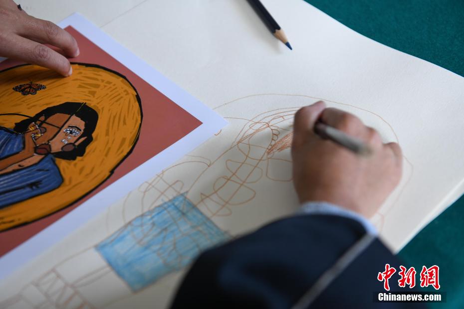 圖為那曲市特殊教育學校老師教學生畫畫。貢嘎來松 攝
