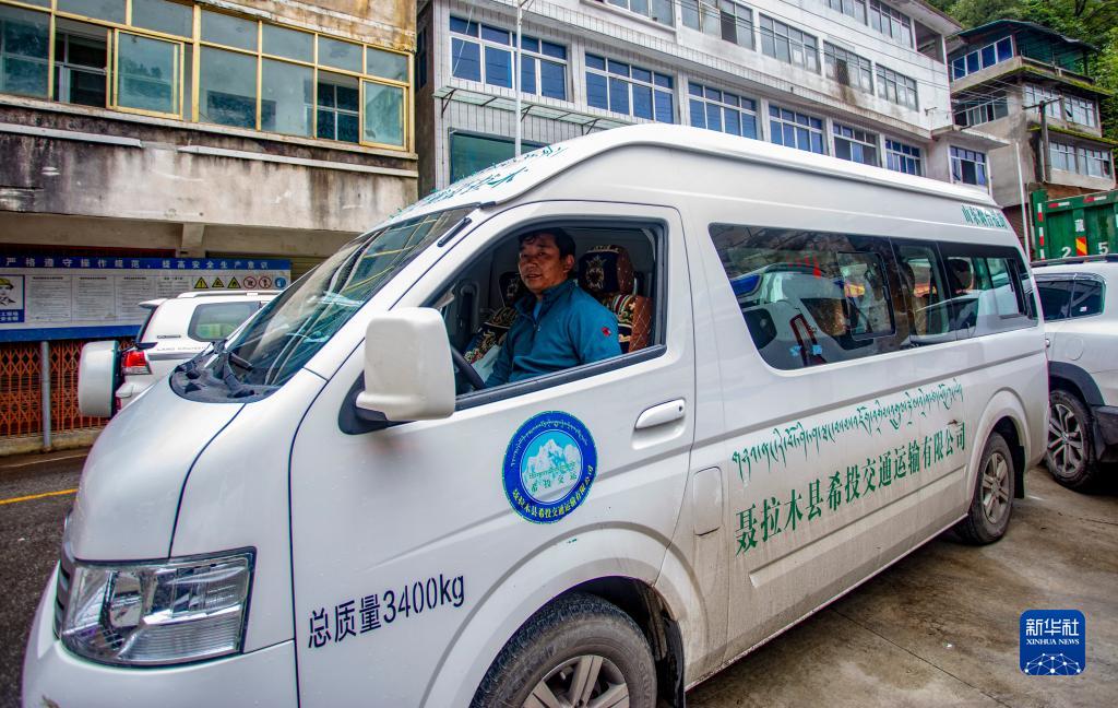 駕駛員旦增尼瑪運(yùn)營的旅游車負(fù)責(zé)接送中國游客往返樟木口岸與聶拉木縣城(9月9日攝)。樟木口岸恢復(fù)客運(yùn)功能后,他每天都要在這條線路上跑4、5個來回。新華社記者 姜帆 攝