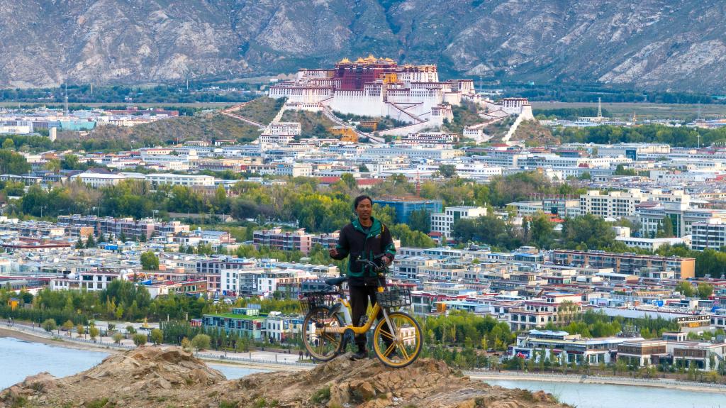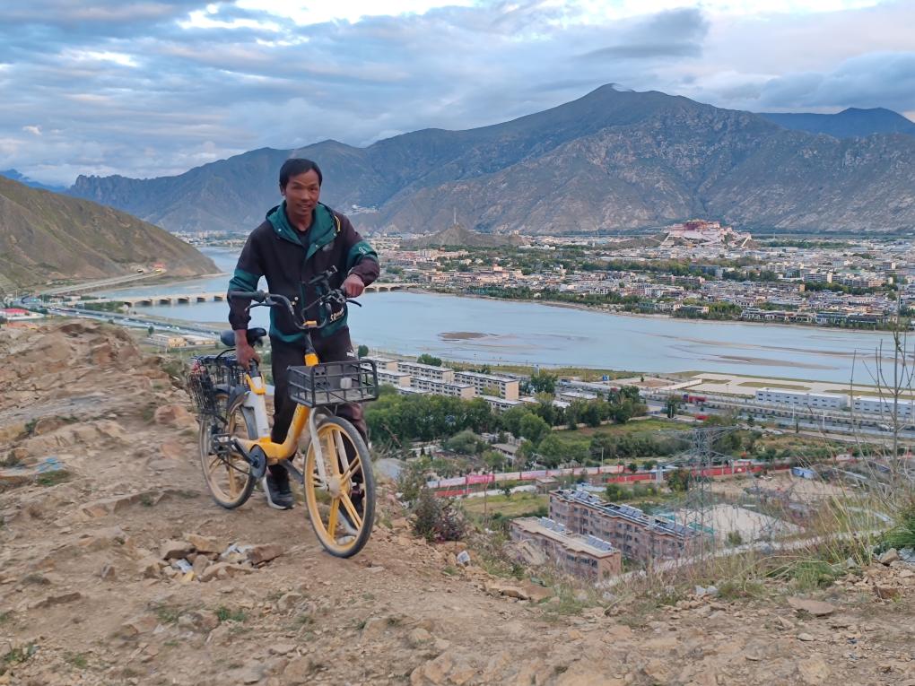 王賢日騎車跨過位于西藏左貢縣境內(nèi)的東達(dá)山埡口
