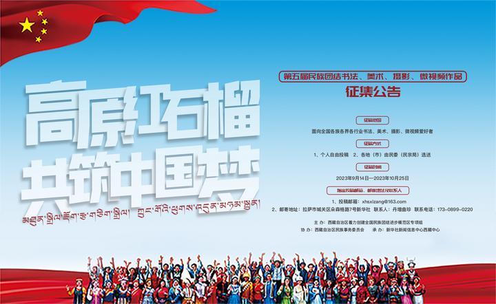 為深入學習貫徹習近平總書記關于加強和改進民族工作的重要思想,緊扣鑄牢中華民族共同體意識主線,持續(xù)深化著力創(chuàng)建全國民族團結進步模范區(qū),不斷促進各民族交往交流交融,即日起,西藏自治區(qū)著力創(chuàng)建全國民族團結進步模范區(qū)專項組辦公室決定在全國范圍開展“高原紅石榴 共筑中國夢”為主題的第五屆民族團結書法、美術、攝影、微視頻作品征集活動?,F(xiàn)將有關事宜公告如下。