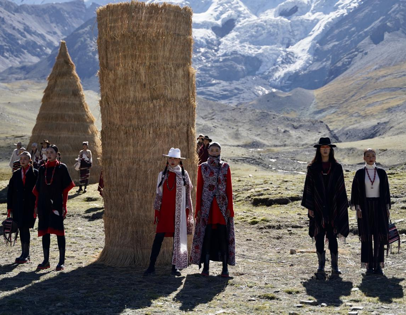 以雪域高原的藍(lán)天白云為幕,以廣袤無垠的高山草甸為毯,以金光燦燦的青稞裝飾為景……9月17日上午10時許, 來自上海金山的時裝品牌:沙涓“雪域·回響”喜馬拉雅大秀在西藏日喀則江孜縣乃欽康桑雪山下舉行,向現(xiàn)場觀眾呈現(xiàn)了一場西藏氆氌手工藝大秀,并通過視頻直播全球首發(fā),展現(xiàn)非遺復(fù)興。