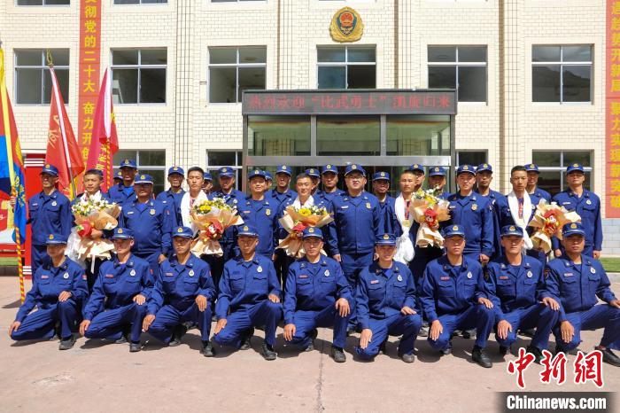 昌都森林消防支隊(duì)迎接載譽(yù)歸來(lái)的隊(duì)員。張強(qiáng) 攝