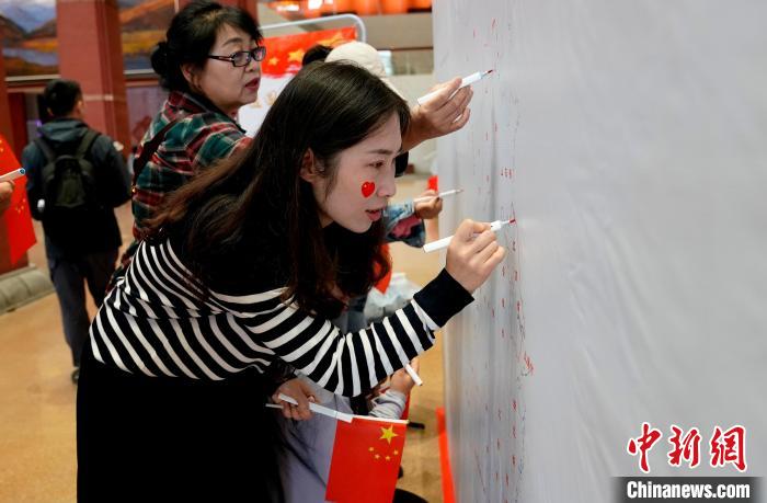“‘祖國在我心中’的活動太有意義了,必須要參與、拍照。”博物館大廳里,參觀游客紛紛點贊、參與活動,歡度國慶。