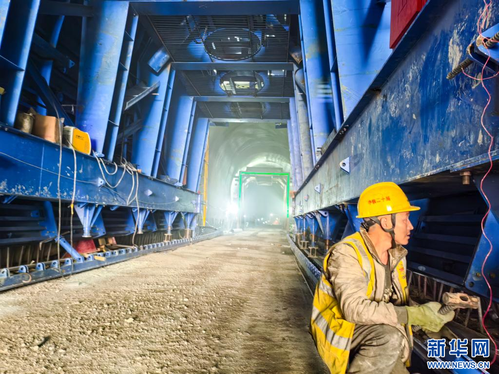 中鐵二十局建設者進行然烏隧道平行導洞二襯臺車加固(受訪者供圖)