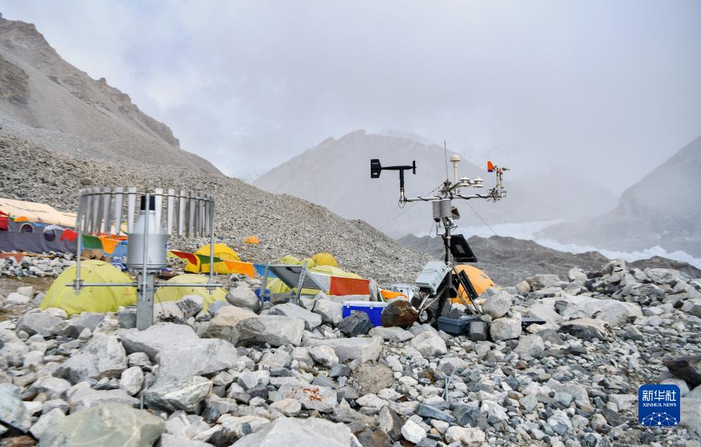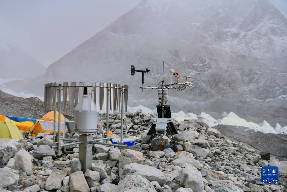 位于海拔5700米卓奧友峰前進(jìn)營地的自動氣象站(9月29日攝)。新華社記者 晉美多吉 攝