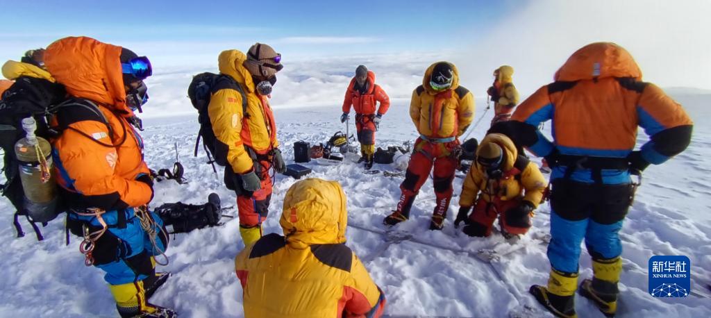 10月1日凌晨3時,科考隊員從海拔7100米的卓奧友峰C2營地出發(fā),歷經(jīng)6個多小時攀登,于當(dāng)日9時15分抵達(dá)海拔8201米的卓奧友峰峰頂,成功架設(shè)海拔8201米的自動氣象站。