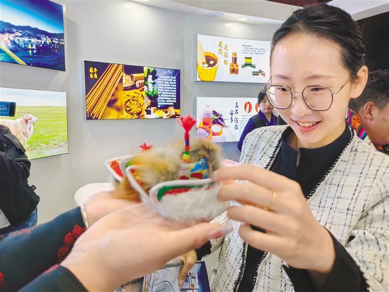 “這次畜產(chǎn)品展銷活動(dòng)上,我們主要銷售天線帽工藝品、玉石、羊毛圍巾、羊毛毯等,產(chǎn)品價(jià)格比較實(shí)惠,前來咨詢購(gòu)買的人也很多。展銷不到兩個(gè)小時(shí),就賣了1000多元?!卑捕嗫h措那湖文化傳播有限責(zé)任公司負(fù)責(zé)人貢布多吉的臉上充滿了喜悅。