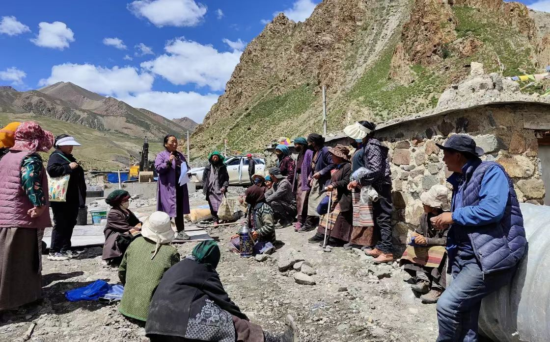 9月初,在雪熱村,縣農(nóng)業(yè)農(nóng)村局的畜牧業(yè)專技人員卓嘎結(jié)合鑄牢中華民族共同體意識和“三個意識”,宣講草原生態(tài)補獎政策、牛羊出售補貼、農(nóng)機具購置補貼等與群眾生產(chǎn)生活息息相關(guān)的政策,炎熱的天氣絲毫不影響群眾聆聽宣講的熱情。