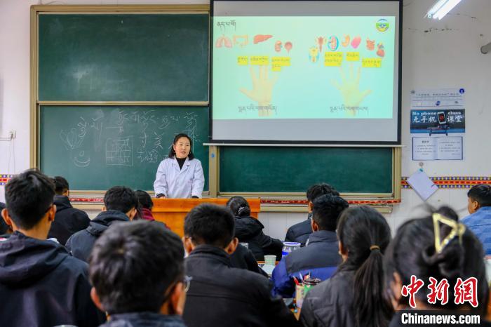 10月12日,中新社記者走進(jìn)西藏藏醫(yī)藥大學(xué)教室,一位老師正向40多位學(xué)生用藏語講授藏醫(yī)藥典籍《四部醫(yī)典》中的脈診,不少同學(xué)的筆記本上,用藏文密密麻麻記滿了要點(diǎn)。