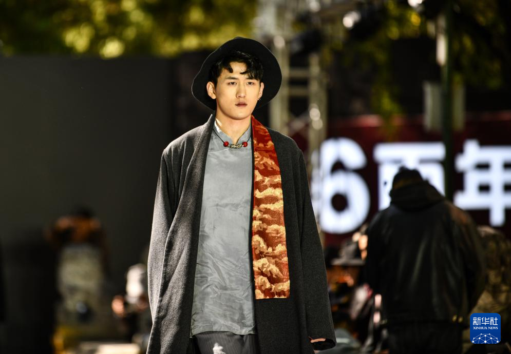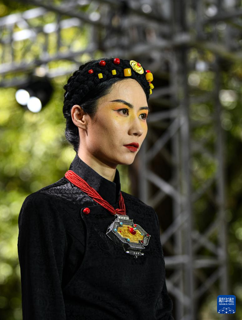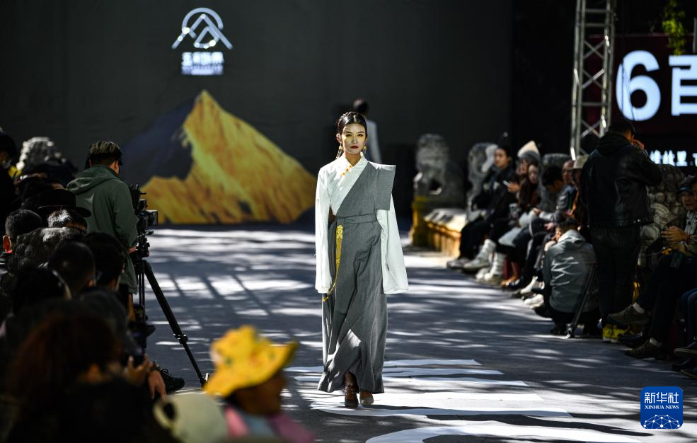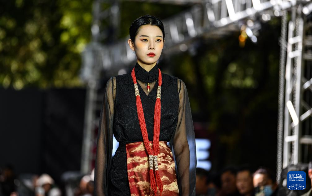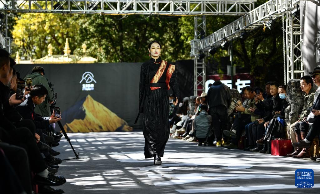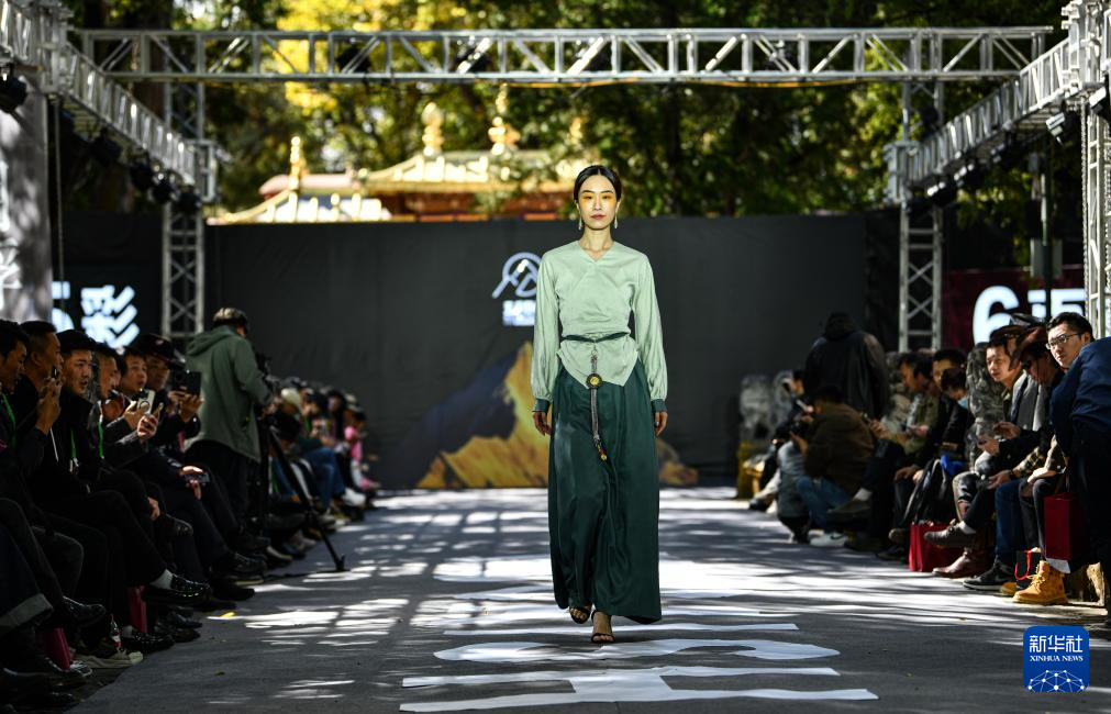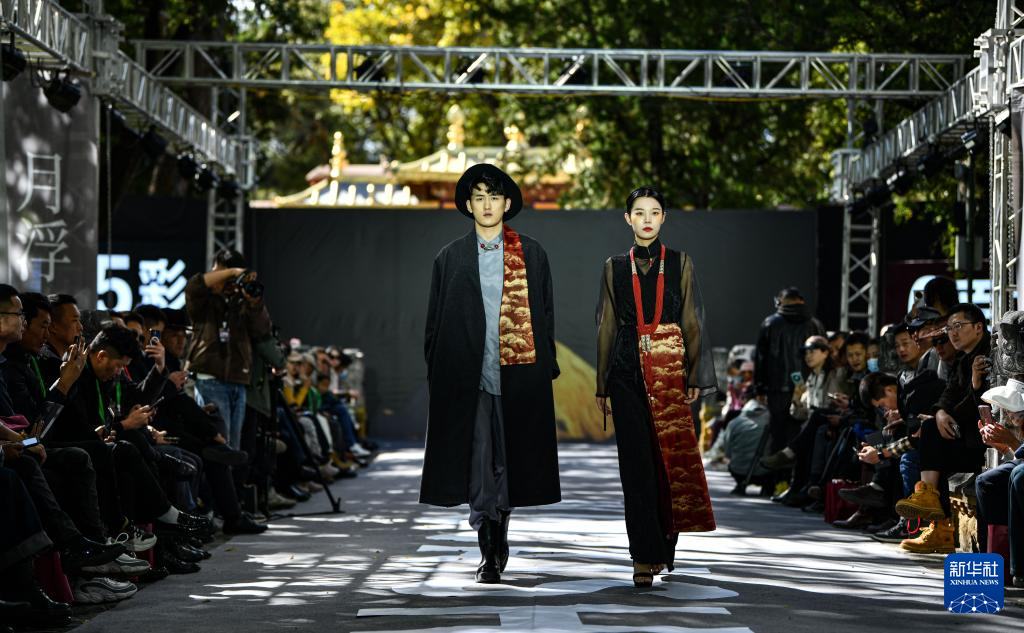 10月21日,模特在時(shí)裝發(fā)布會(huì)上展示創(chuàng)新藏裝。新華社記者 晉美多吉 攝