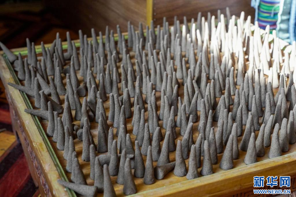圖為旦增曲扎正在制作藏香(10月20日攝)。新華網(wǎng)發(fā) 司秦菱 攝