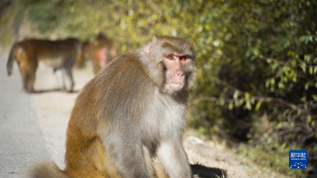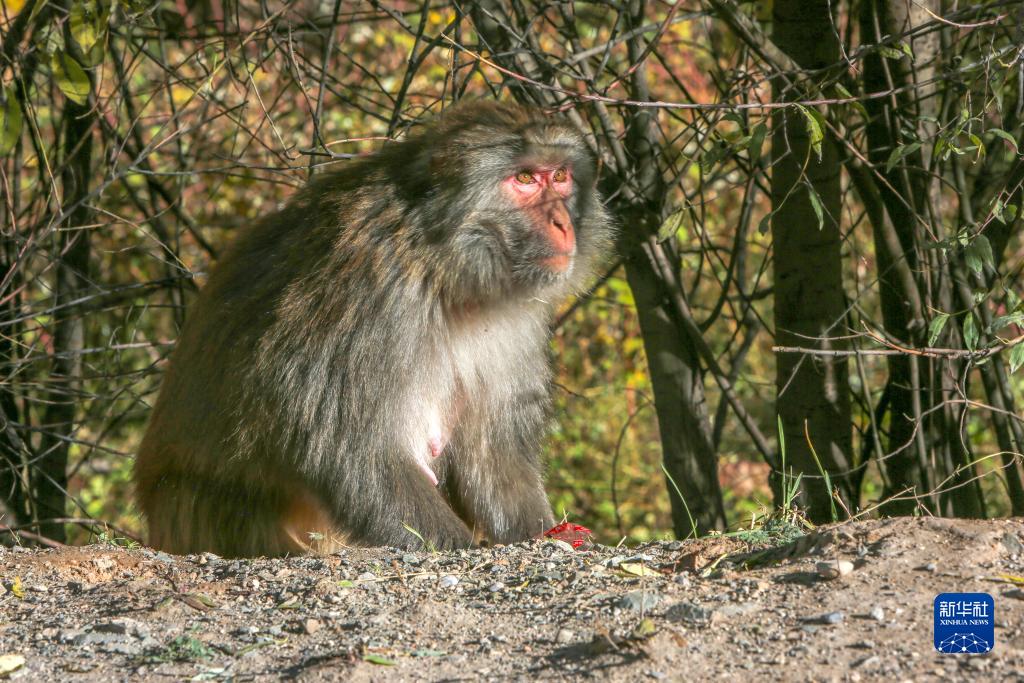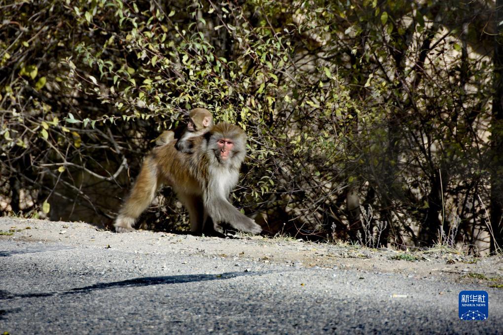 在317國道旁拍攝的野生藏獼猴(10月25日攝)。新華社記者 聶毅 攝