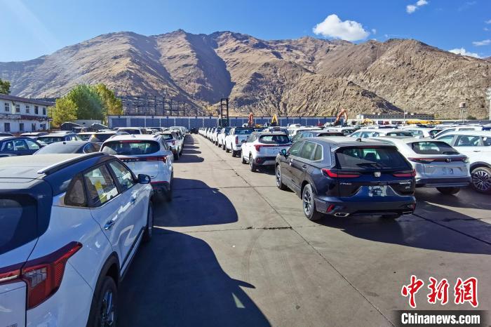 10月27日,青藏鐵路拉薩車務段拉薩西站貨場,遠遠望去停滿了嶄新的汽車,工作人員正在加緊卸車裝運。今年以來,拉薩西站貨場累計發(fā)運商品汽車2920輛292車,到達商品汽車3.1萬輛3100車,預計全年將發(fā)運6850輛685車,到達3.68萬輛3600余車。