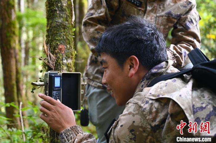 此次進(jìn)山,除了巡護(hù),他們還有個(gè)重要的任務(wù),查看原始森林里布設(shè)的紅外相機(jī)。“山羊”索朗頓珠憑著記憶帶著大家輕松找到了林中布設(shè)的紅外相機(jī)。紅外相機(jī)正常運(yùn)行,影像記錄了待辨認(rèn)的野生動物。