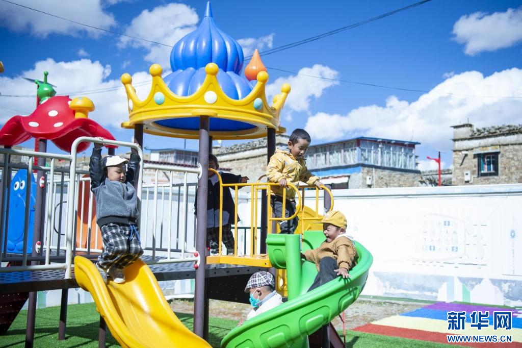 西藏措美縣卓德村幼兒園的小朋友們在課間玩耍。新華網(wǎng) 旦增努布 攝