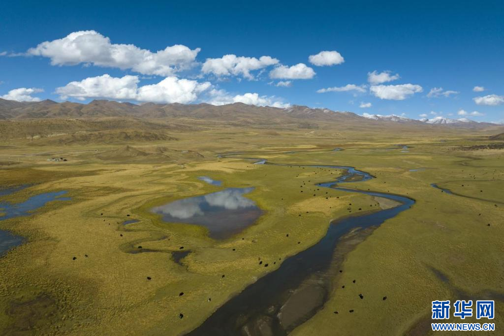 在西藏措美縣境內(nèi)拍攝的牦牛(無人機照片)。新華網(wǎng) 旦增努布 攝