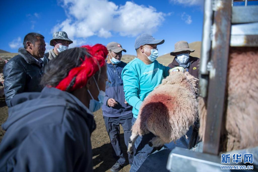 商戶在挑選綿羊。新華網(wǎng) 旦增努布 攝