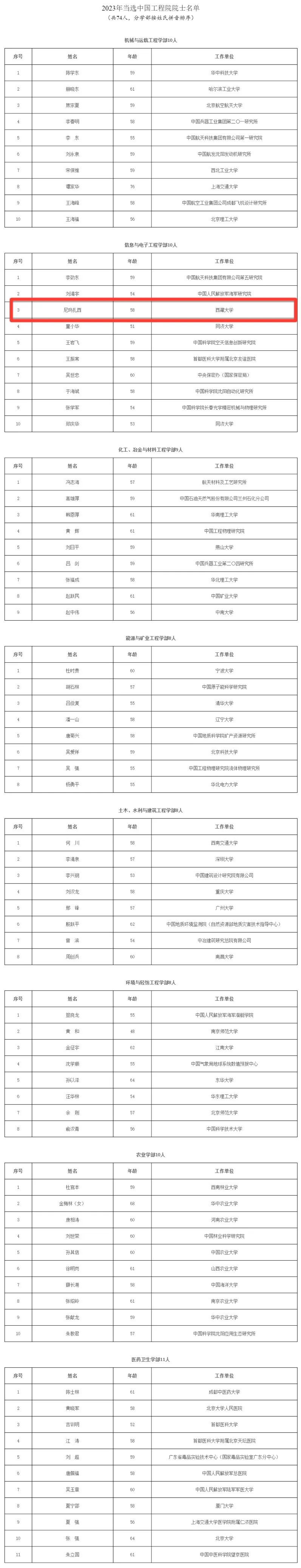 中國工程院公布了2023年院士增選當(dāng)選院士名單