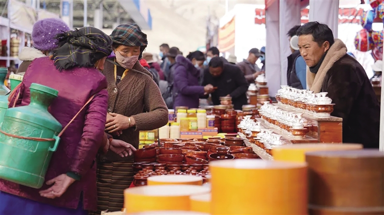 在物交會(huì)現(xiàn)場(chǎng),民族手工藝產(chǎn)品、生活日用品、家具等各種商品琳瑯滿目。次仁金果藏帽、慈成藏香等種類繁多,生活日用品一應(yīng)俱全,尼泊爾商品更是吸引了眾多市民駐足圍觀。