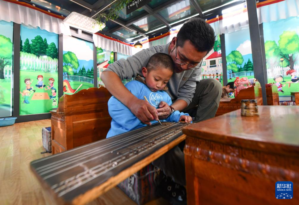 在拉薩的一家藏文書法興趣班里,老師指導(dǎo)學(xué)生使用“墻星”練習(xí)藏文書法(12月2日攝)。新華社記者 春拉 攝