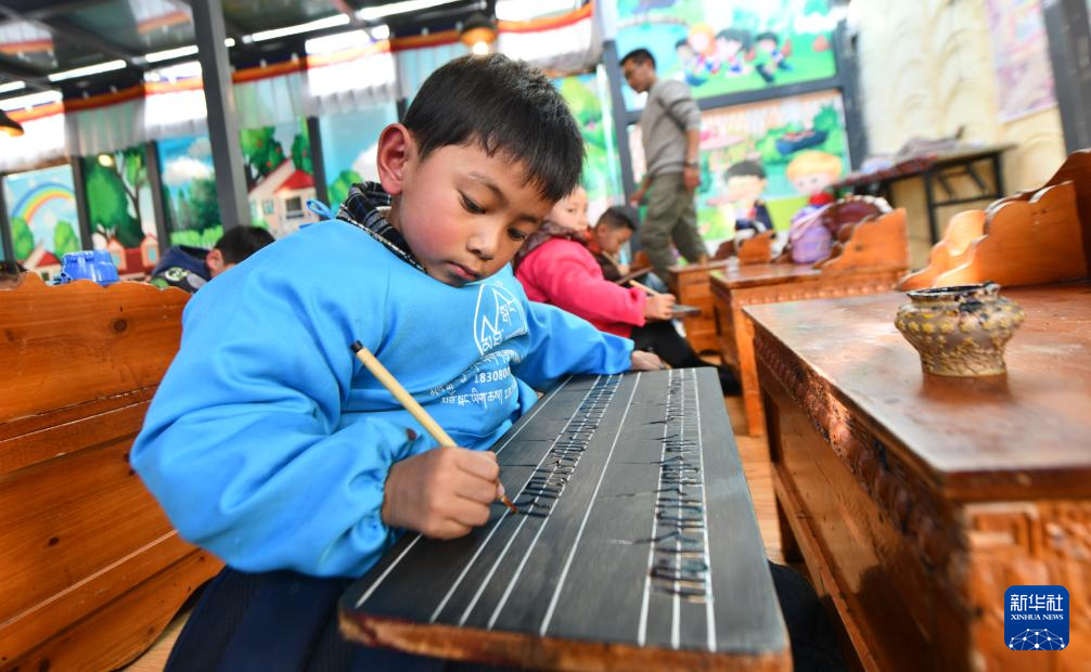 在拉薩的一家藏文書法興趣班里,學(xué)生使用“墻星”練習(xí)藏文書法(12月2日攝)。新華社記者 春拉 攝