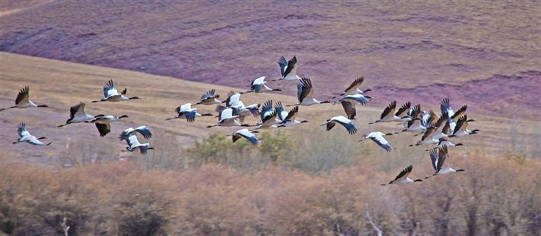 “生態(tài)好不好,看鳥就知道?!苯?,在西藏越冬的“老朋友”黑頸鶴越來越多。每年3月中旬,黑頸鶴會從越冬地——雅江中游河谷及其支流拉薩河、年楚河流域的“一江兩河”地區(qū),飛去羌塘北部草原等地繁育后代;10月中下旬又從繁殖地——那曲的班戈縣、申扎縣、嘉黎縣,阿里的日土縣、普蘭縣,日喀則的昂仁縣及拉薩的當雄縣返回到越冬地。黑頸鶴的成群遷徙、停歇或繁殖,正是生態(tài)環(huán)境持續(xù)向好的“最美注腳”。