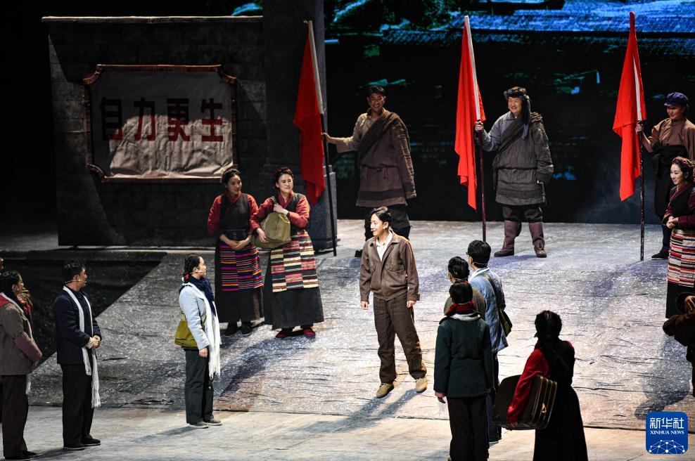 12月15日拍攝的話劇《老西藏》首演現(xiàn)場。新華社記者 晉美多吉 攝