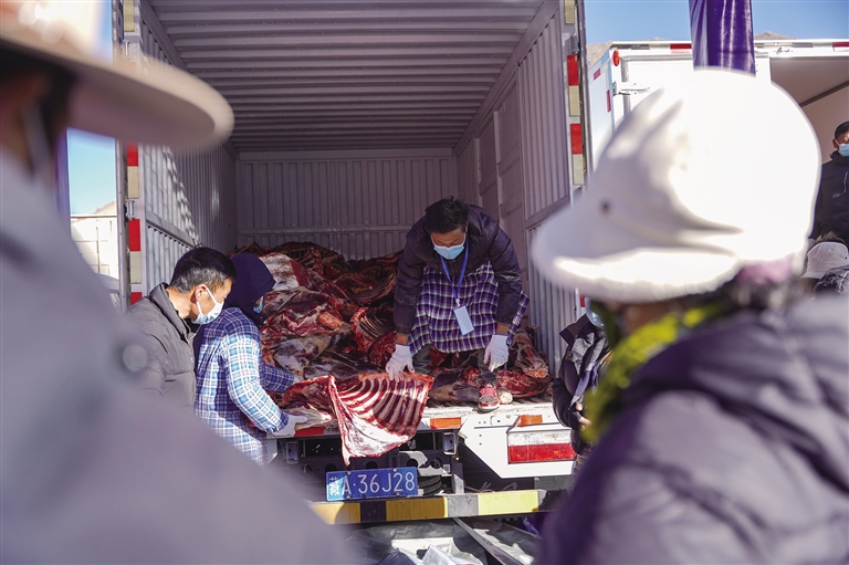12月15日,由拉薩市農(nóng)業(yè)農(nóng)村局承辦的“2023年拉薩市牦牛肉集中上市銷售活動(dòng)”正式開啟,該活動(dòng)為期7天,共計(jì)投放48萬(wàn)斤牦牛肉。記者了解到,為了讓市民群眾買到放心肉,此次活動(dòng)所出售的牦牛肉均產(chǎn)自拉薩本地,且必須經(jīng)產(chǎn)地檢疫合格后方能進(jìn)行銷售。