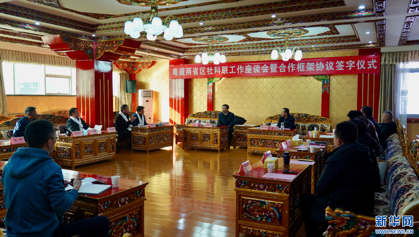 圖為12月20日粵藏兩省區(qū)社會科學(xué)界聯(lián)合會工作座談會暨合作框架協(xié)議簽字儀式現(xiàn)場。新華網(wǎng) 柑丹鴦琦 攝