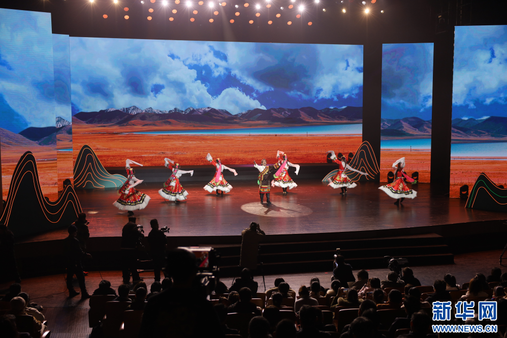 圖為12月21日開幕式晚會歌曲《青稞美酒獻(xiàn)給你》演出現(xiàn)場。新華網(wǎng)發(fā) 李騰 攝