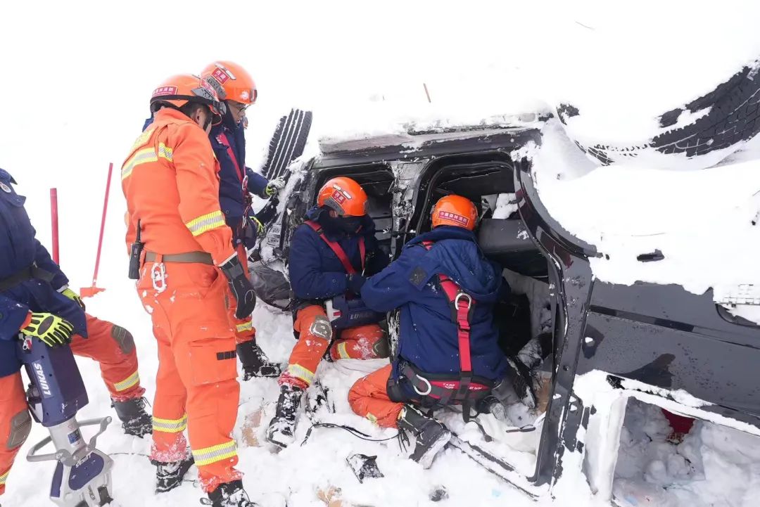 65名隊員到達(dá)現(xiàn)場時,天已經(jīng)黑透,周圍大風(fēng)呼嘯,數(shù)輛受災(zāi)車輛被直接埋壓在雪下,救援難度很大,很多隊員都心里直打顫。
