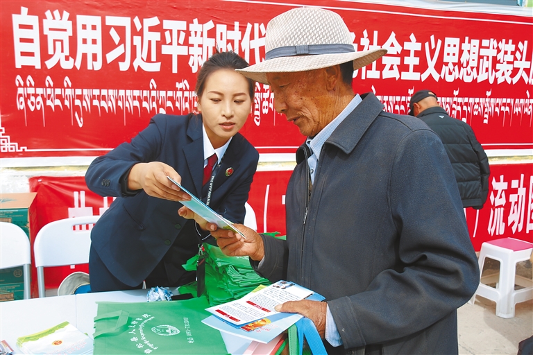 日前,曲松縣新時(shí)代文明實(shí)踐中心聯(lián)合曲松鎮(zhèn)新時(shí)代文明實(shí)踐所、瓊嘎村新時(shí)代文明實(shí)踐站開(kāi)展“移風(fēng)易俗潤(rùn)民心 鄉(xiāng)風(fēng)文明促振興”主題宣傳活動(dòng)。圖為工作人員向群眾講解宣傳資料。
