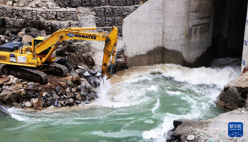 1月3日,一臺挖掘機在大唐扎拉水電站項目導流洞入口處施工。新華社記者 劉文博 攝