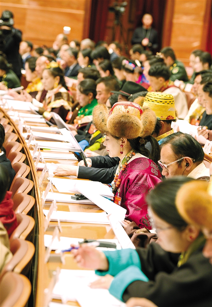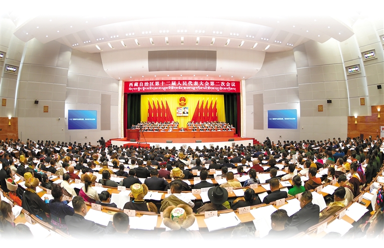 西藏自治區(qū)十二屆人大二次會議現場?!∮浾摺∨硕唷z