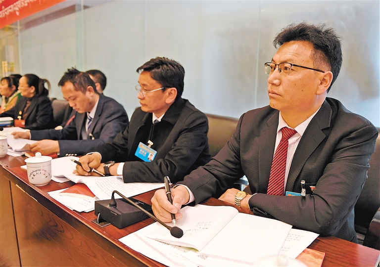 阿里代表團(tuán)審議政府工作報(bào)告。記者 旦增蘭澤 攝