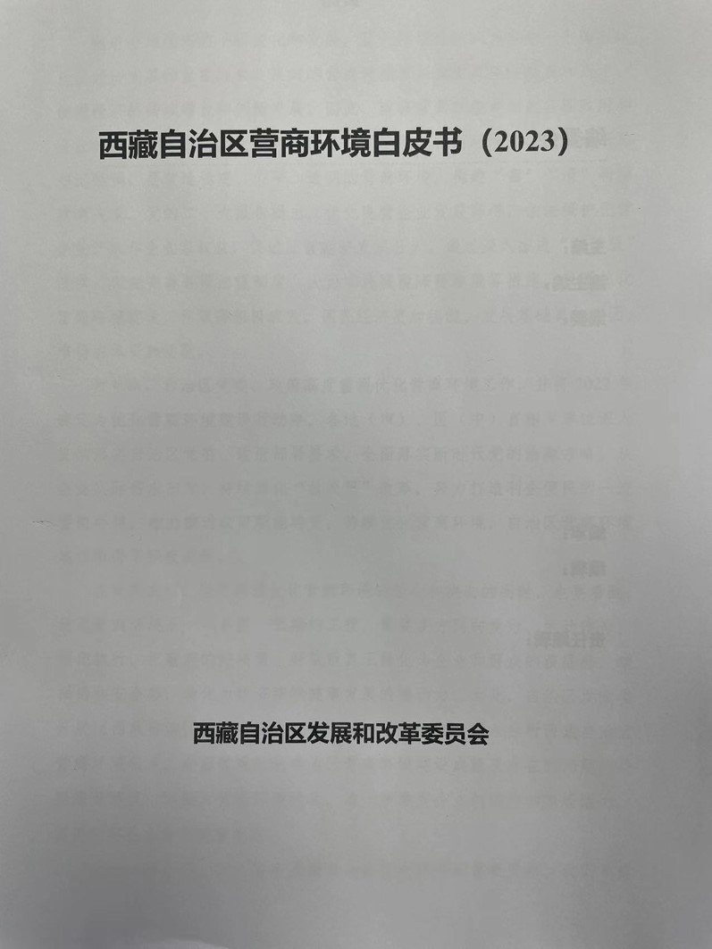 2024年1月23日,《西藏自治區(qū)營商環(huán)境白皮書(2023)》發(fā)布,這是西藏自治區(qū)首次發(fā)布營商環(huán)境白皮書。西藏聚焦“審批事項(xiàng)最少、審批時(shí)限最短、審批流程最優(yōu)、審批服務(wù)最好”目標(biāo),持續(xù)深化“放管服”改革,營商環(huán)境改革成效顯著。