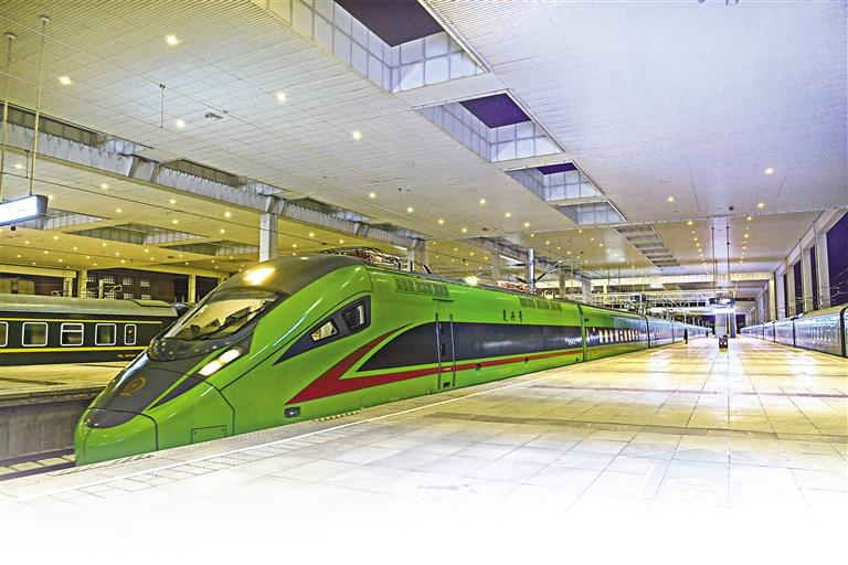 春運(yùn)首日,“復(fù)興號(hào)”緩緩駛出拉薩火車站。記者 丹增群培 攝