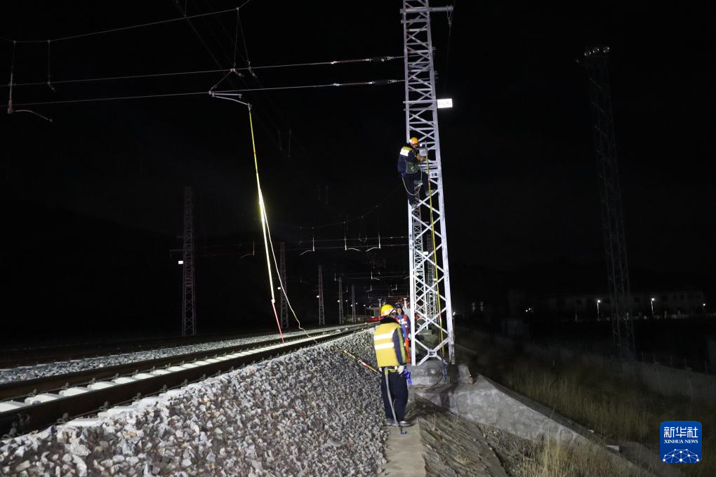 接觸網(wǎng)源源不斷地為電力火車提供電力,就像電氣化鐵路的“血管”?!拔覀兙褪歉咴姎饣F路的醫(yī)生,每天夜里,為它的‘血管’做一場細致的手術(shù),保證接觸網(wǎng)安全暢通?!崩罘e王說,細致的夜間作業(yè)確保了拉林鐵路在春運期間能夠安全、高效地運行。