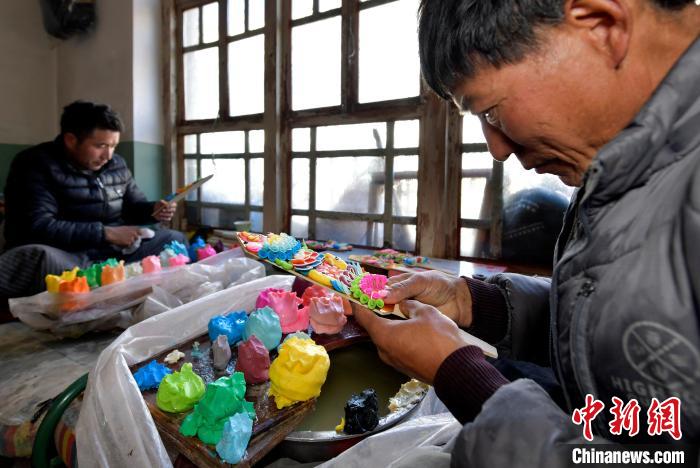 雙手被冷水泡得紅腫、雙腳一直盤腿而坐……制作過程固然辛苦,卻也讓米瑪一家收入頗豐?!爸谱?、售賣酥油花,每年人均有一萬元(人民幣,下同)左右的收入。這對于農(nóng)閑時的我們來說,還是很不錯的?!泵赚斦f,接下來他會教孫輩來制作酥油花,讓年輕一代慢慢學(xué)習(xí)了解、傳承這項技藝。
