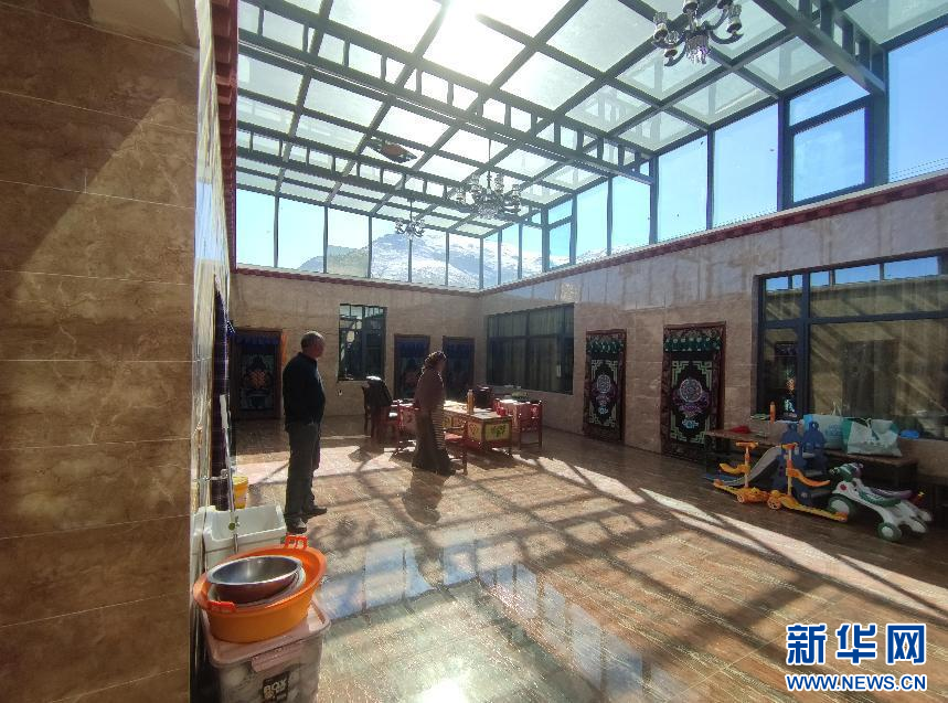 村民貢嘎是克日村第二批“美麗鄉(xiāng)村·幸福家園”建設(shè)行動(dòng)計(jì)劃的參與者,翻新房子70%的費(fèi)用由當(dāng)?shù)卣a(bǔ)貼,自己只需支付30%,如今房屋已改造完畢,一家子正式入住。孫子們?cè)诠鉂嵉牡孛嫱嫠?,和煦的陽光從屋頂?shù)年柟馀镎者M(jìn)客廳,溫暖了整個(gè)冬天。