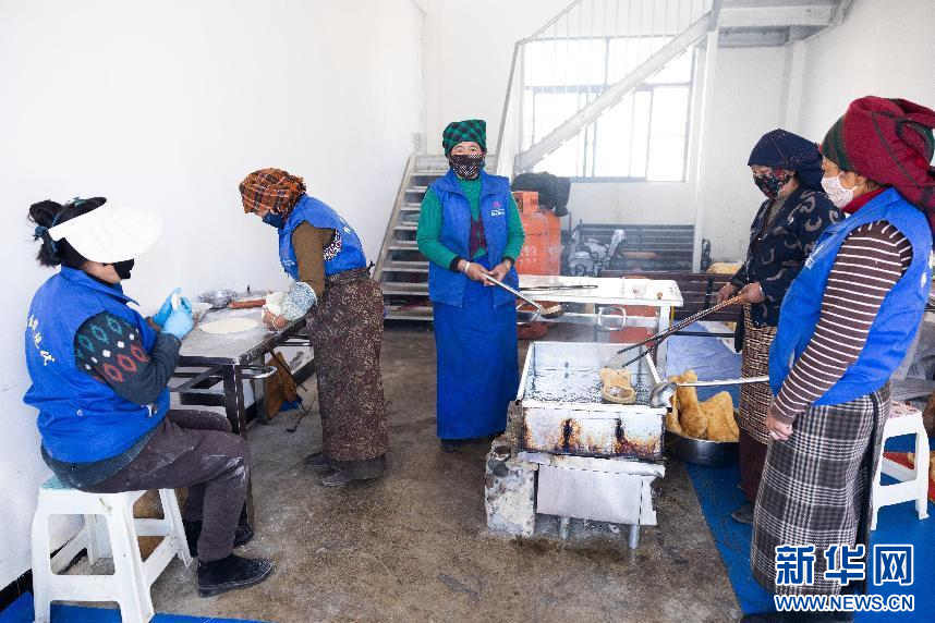 圖為西藏現(xiàn)代服務(wù)業(yè)技工學(xué)校的學(xué)員正在制作卡塞“德格”(1月29日攝)。新華網(wǎng)發(fā) 李騰 攝