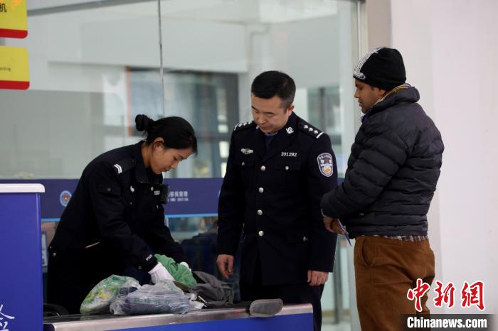圖為聶拉木邊檢站民警對(duì)出境旅客的行李物品進(jìn)行檢查。鄒興國 攝